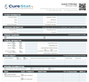Click on the image below. Fill out the attached referral form. Email the signed form to: pharmacy@curestatrx.com. The completed form can also be faxed to (858) 281-0045.